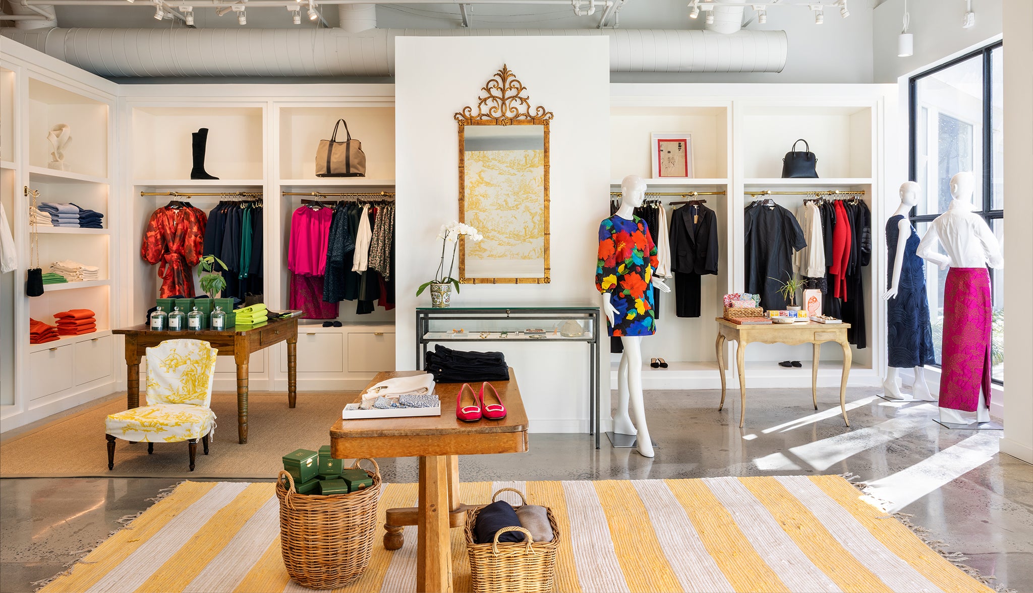 We’re located in The Specialty Shops, right at the intersection of Carnegie Boulevard and Roxborough Road in SouthPark. The center offers free parking on both sides, but the closest spots are on the Carnegie side. Enter next to BrickTop’s and you’ll see a large fountain in the courtyard — our women’s shop entrance is to the right of the men’s, just past the fountain. (The shops are connected inside, so you can access both shops from either door.)