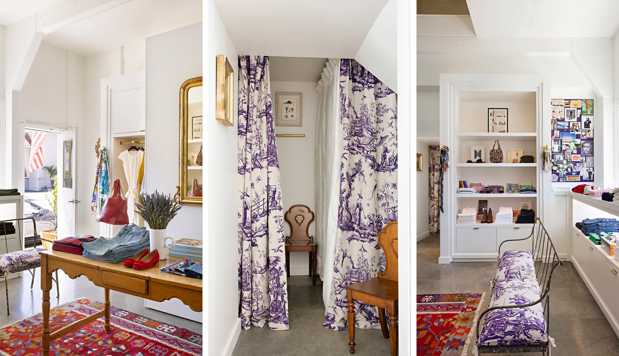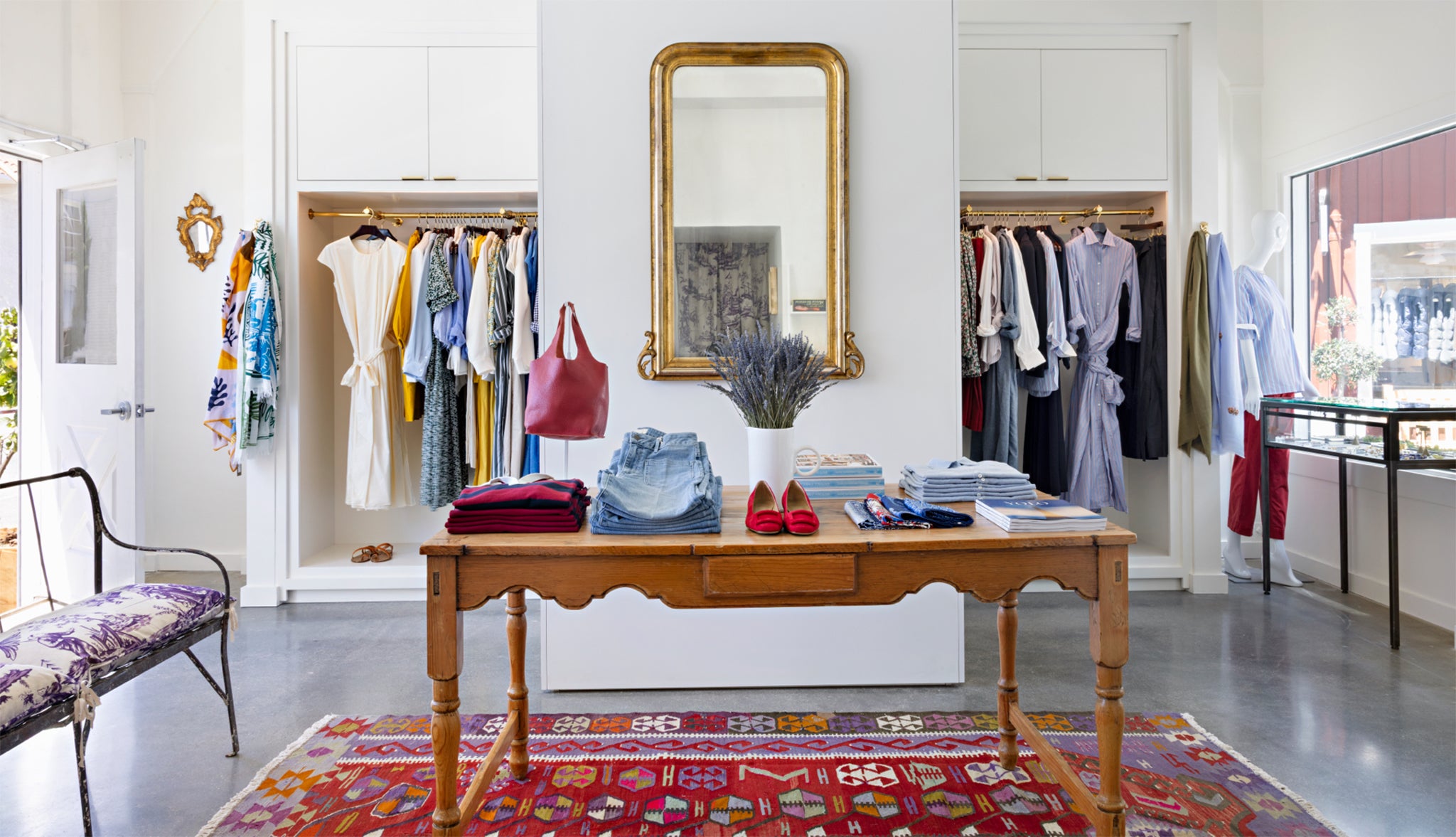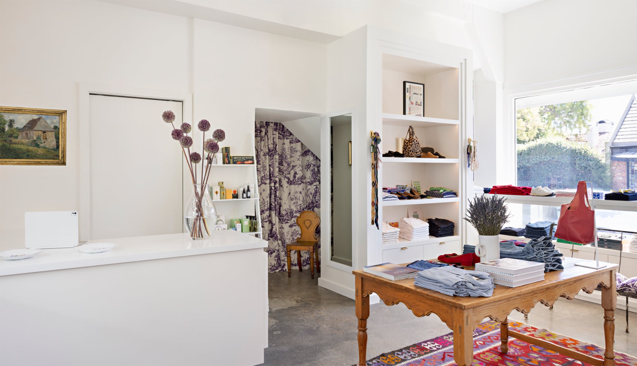 We’re located at the Brentwood Country Mart in Santa Monica, which makes parking easy. (In fact, they make everything easy… it’s a special place.) The lot offers one hour free with validation or purchase — every shop in the center validates, including ours — and it’s $5 per hour after that. Valet parking is also available daily from 11am to 3pm if you’d prefer a quicker option. After parking, you can enter the Mart through any of the breezeways, but the closest route is the one near 26th Street. Our women’s store is on the right, across from Broken English. There are doors on both sides, so you can also enter from 26th Street — just look for the Ann Mashburn awning. We’ll have smiling faces to greet you, something great on the stereo, and a cold Coke or Modelo at the ready.