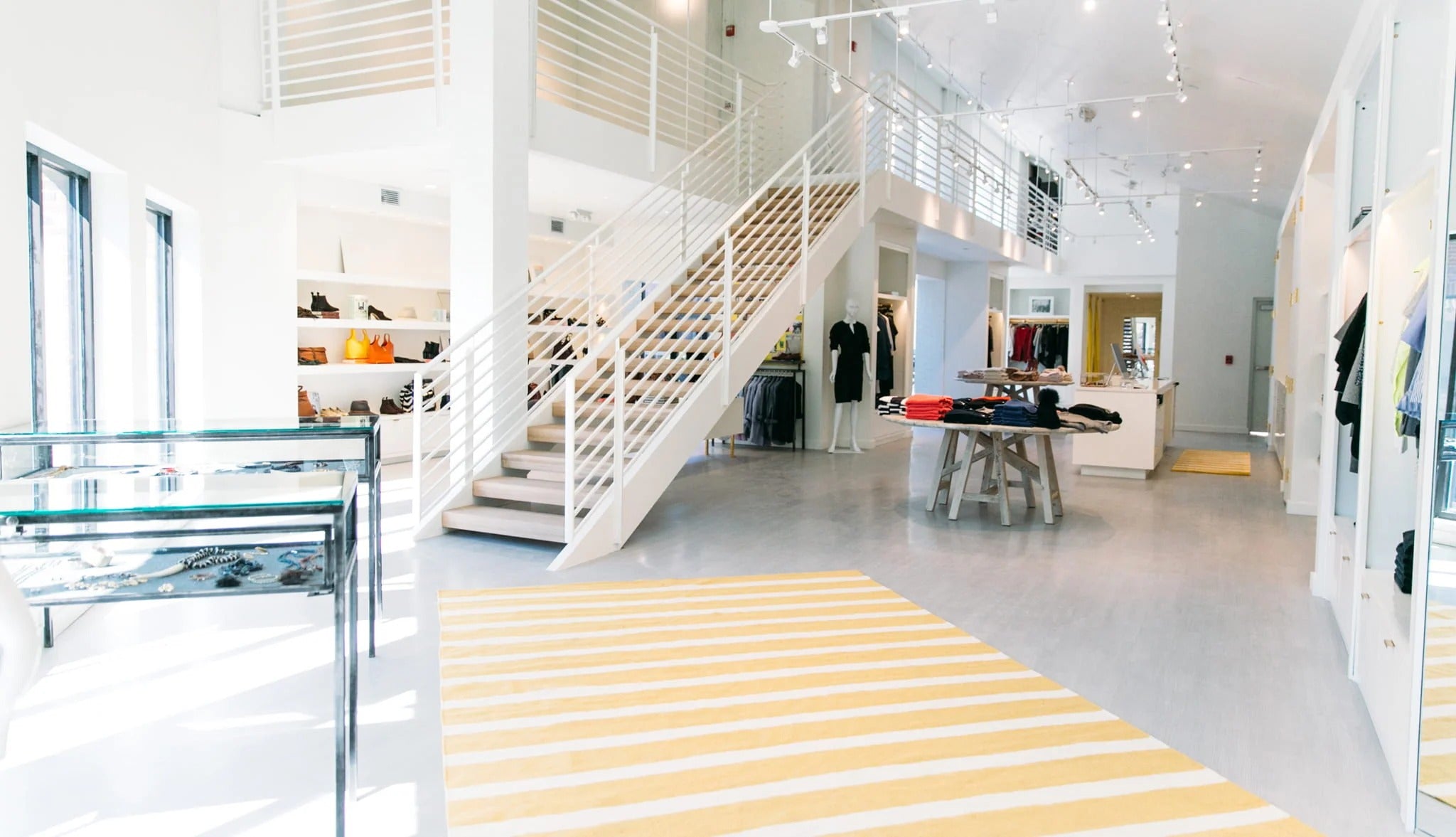 You can also come in through our men’s shop, located at the corner of Wisconsin and N Street — the shops are connected inside through a shared atrium, so you can enter from either side. We'll have smiling faces to greet you, something great on the turntable, and a cold Topo Chico or glass of prosecco at the ready.