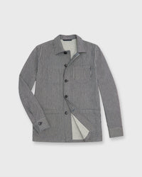 Chore jackets originated in 19th-century France as garments to wear while knocking out day-to-day work (hence the name). We haven’t strayed too far from the original — simple shape, clean patch pockets at the front, an easy fit through the body — but we've taken it up a notch with corozo buttons and elevated fabric. This one is made from a super-traditional hickory-striped denim from Portugal and layers beautifully over more pattern. Have a little fun with it.