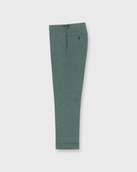 This is a more streamlined version of our classic flat-front dress trouser, still cut on the slimmer side, but with elasticized tabs at the sides instead of belt loops. (There's a trademarked term for this that rhymes with “tax” — you know the one — but the most important thing to know is that you don’t need to wear a belt. One less thing to worry about.) This pair is made from an Italian plainweave composed of wool with a healthy dose of cotton and a touch of silk in the mix. Each pair is made in Italy with horn buttons, on-seam pockets, end-on-end pocketing, a split-back waist with our signature green bartack, and a 37.5" unfinished inseam that’s ready to tailor to your perfect length.