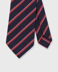 It doesn't get much more classic (or easy-to-wear) than a striped tie. The stripes on this one run the English way — left down to right, heart to sword — per regimental tradition. It's hand-rolled in Italy in our forever-go-to 8cm width: not too skinny, not too fat, and designed to sit in perfect harmony with both the lapel of our jackets and the length of our shirt collars.