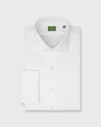 Fine, crisp, 2ply/2ply Italian poplin makes for a perfect tuxedo shirt. This one's got a spread, not winged, collar and a plain pique bib for a slightly more modern take on the traditional silhouette... without going too far off road. Best to keep things pretty classic with black tie. There's a button-out placket, which means you can easily keep our buttons on (3.5mm Trocas shell) or replace the top four with your favorite studs. You can also go sans cummerbund à la Casino Royale. Either way is great. As always, the cut is slim but never skinny with a high armhole for mobility, made with single-needle stitching, 22 stitches/inch, and flat-felled seams.