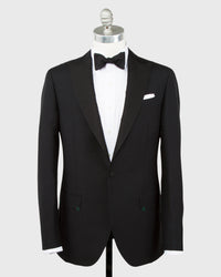 This tuxedo is the black-tie and peak-lapel version of our classic Kincaid suit in a refined wool mohair from England with silk grosgrain trim. The No. 3 make has full canvas construction — the sine qua non of tailoring — with a special, structured 3-layer canvas that'll mold and meld to your body over time. While the jacket has a more formal single-button closure, it has the same Italian-leaning style of the other Kincaids with a natural shoulder and a shorter, darted body with a little tracing. The trousers are cut in our original plain-front shape to complement the jacket, with side-adjuster tabs at the waist and a grosgrain stripe down the sides. We think it's the kind of tux you'll get excited about wearing… and a real upgrade from the ghosts of rentals past. Just like all of our tailored clothing, it's designed to take you to black-tie events in Mississippi, Manhattan, and Milan (and beyond) without looking or feeling out of place.