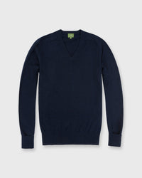 If there's one thing you need in the colder half of the year, whether you're 18 or 81, it's a navy sweater. Hard to argue with versatility. Our classic V-neck sweater is exactly what it sounds like, with a slim — but not tight — fit, a saddle shoulder, and ribbing at the neckline, hem, and turnback cuffs. We think the V is the perfect depth for showing off your shirt without dipping too low. It's made of midweight, 2ply Mongolian cashmere that only gets better (read: softer) with age.