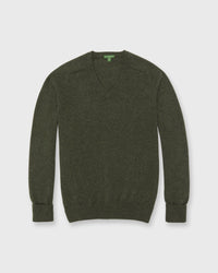 Heather olive: for the browns-and-greys guy who wants to venture a little out of his comfort zone without going all the way into full green territory. Our classic V-neck sweater is exactly what it sounds like, with a slim — but not tight — fit, a saddle shoulder, and ribbing at the neckline, hem, and turnback cuffs. We think the V is the perfect depth for showing off your shirt without dipping too low. It's made of midweight, 2ply Mongolian cashmere that only gets better (read: softer) with age.