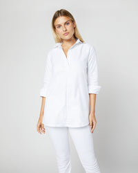 We’ve been running this minimal tunic since day one, in part because it looks so good on so many people — a slightly flared shape and a wide, no-button placket make it especially good for those with a fuller bust and the hem hits midthigh for a little more coverage. The fabric of this one is beautiful, too. We've long used an around-the-office portmanteau for it (royal + oxford = roxford,) since it’s lighter and dressier than a traditional oxford, with a more defined texture and a slight glow to the surface. It's just an incredibly versatile shirt.