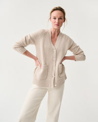 The Selma is a ultra-classic cardigan with a deep V neckline, hip pockets, and delicate shell buttons. Surprisingly sexy. This one is made from 10ply Mongolian cashmere (which is about as plush and soft as it gets). Layer it over everything from a t-shirt to a turtleneck to a floaty dress... or wear it with nothing underneath at all.