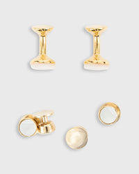 Pearl tuxedo studs are an easy way to punch up a formal shirt, and this set has cufflinks to match. Codis Maya is named after the Mayans, who worshiped precious metals. While the London-based artisans behind CM don't go quite that far, they're pretty dang skilled. Gem-setting, hand- and guilloche-engraving, fired enamel — they can do it all.