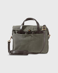 Filson makes some of the world's most rugged luggage and outdoor gear. Nearly indestructible, even. This briefcase is made in Washington from their exclusive Rugged Twill, a tightly woven cotton twill that's lightly waxed to protect against abrasion and wet weather. It's got heavy-gauge, two-way brass zippers and bridle leather straps.