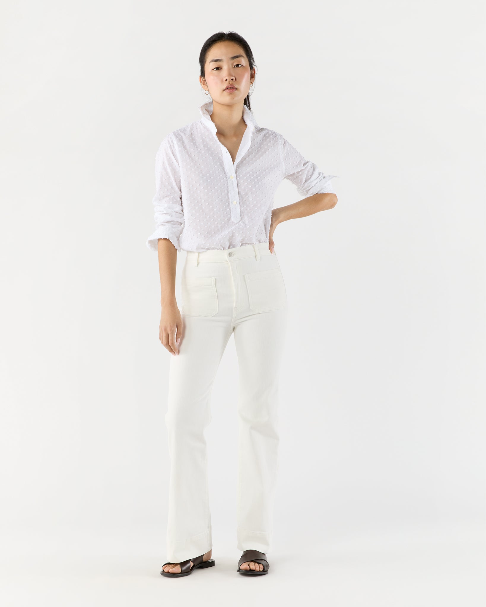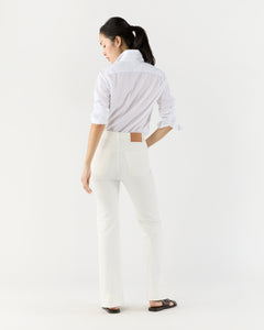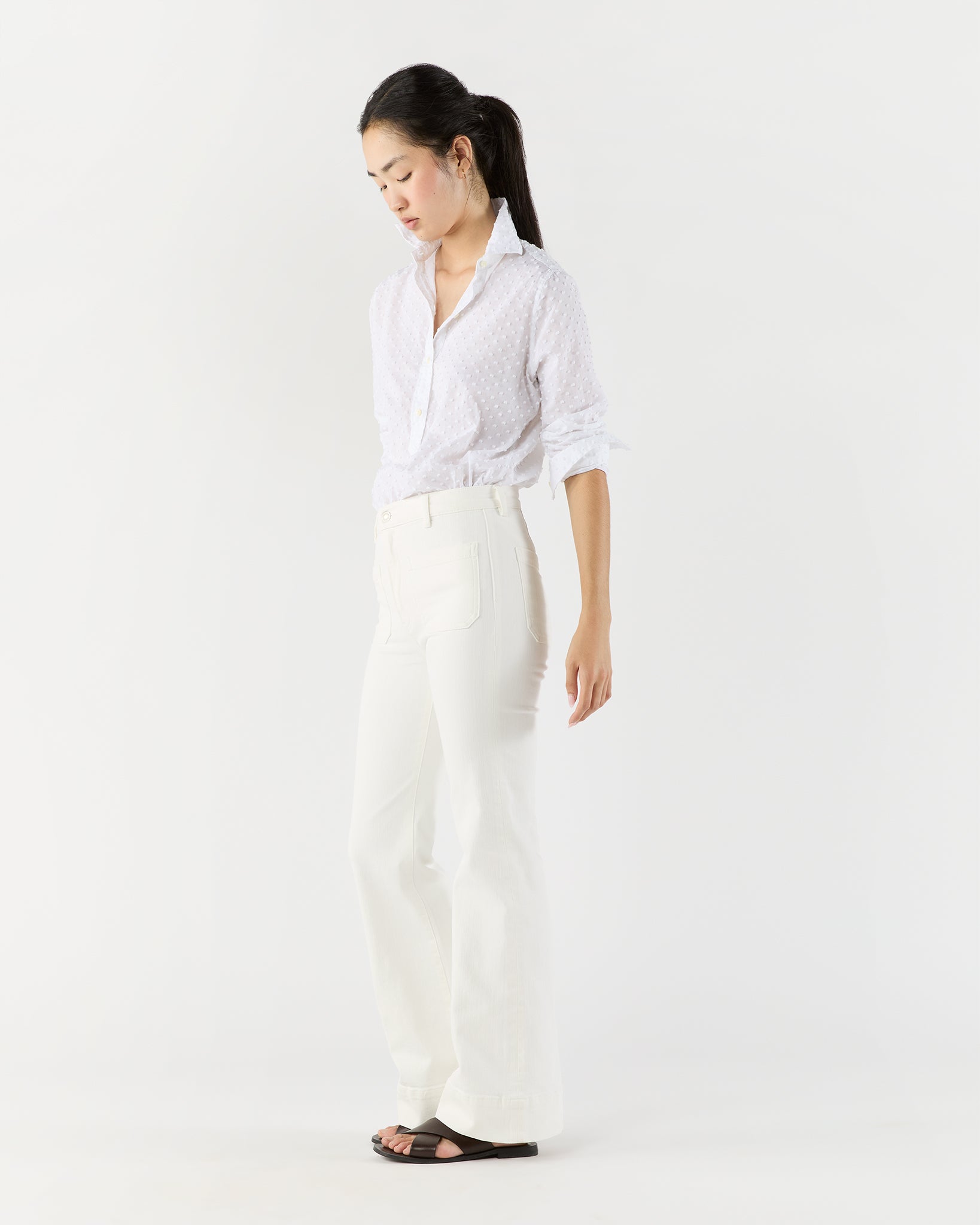 Stockholm-based Jeanerica is our latest favorite minimalist denim line, specializing in “essential styles in perfect fits with understated details and expert washes.” Sounds pretty good to us. The St. Monica is a sailor-style silhouette with a super high rise, a flared leg, and patch pockets. This wash is a creamy white with just a touch of stretch.
