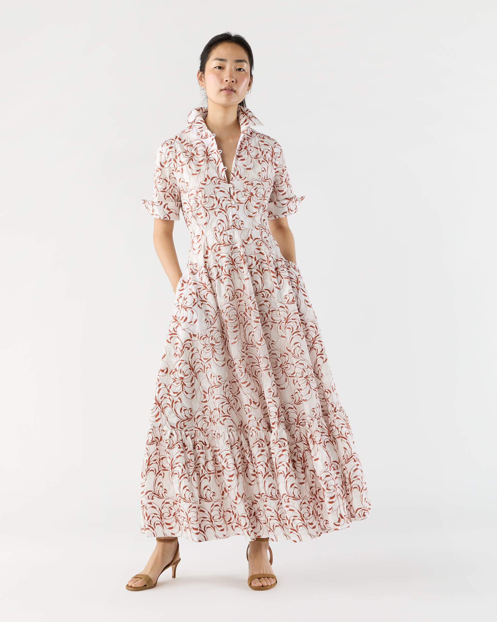 Milan-based La DoubleJ makes party-ready skirts and dresses in reissued vintage fabrics, “distilled through a lens of pure joy, eye-popping print and love of all things maximal.” Sounds about right! The San Pietro is a stepped-up shirtdress destined to be the best thing in your suitcase — with delicate covered buttons to the waist and a flouncy tiered skirt. It's made in Italy with embroidered cotton and finished with a chic mandarin collar.