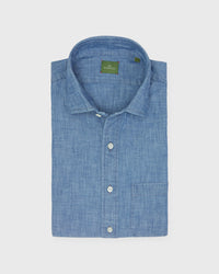 Our Otto shirts are beautifully handsewn in Italy at eight key points... because otto is Italian for ‘eight’; get it? Hand-assembling the stress points allows for a fit that moves along with you, and makes for a really, really special sport shirt, all the way down to the crow's-foot button stitching that's a signature of handwork. This one's made up in a soft, broken-in washed chambray and has a modified spread collar with lightweight, nonfused interlining for a soft, relaxed look. It's got a slimmish cut, high armhole, and long-enough-to-stay-tucked-in shirttail, and is made with single-needle stitching, 22 stitches/inch, flat-felled seams, and thick, 3.5mm Trocas shell buttons. (FYI Sid likes the extra length, but you can always get it shortened.) Just like our other sport shirts, but a bit more elevated.