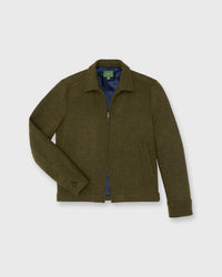 A stripped-down, mechanic-style jacket silhouette named for the early 1960s motorbike. We'd say it's just as classic as its namesake, with a shorter body, a simple two-way zippered front, and angled side pockets. This one is made from Harris Tweed, which is a super-special heritage textile from the Outer Hebrides that's by definition hand-woven on a treadle loom in the weaver's own home. (It's regulated by Scottish law.) Only a select few craftsmen are certified for this, and most come from families that have been weaving for generations. Casual jacket, special cloth.