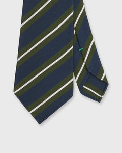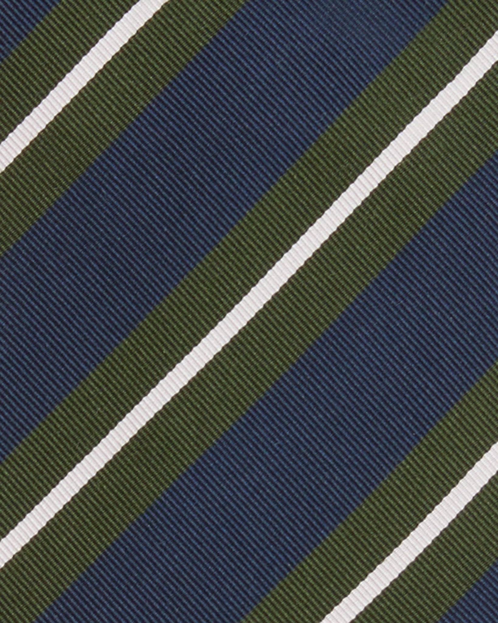Mogador is one of our favorite tie blends… cotton in the warp and silk in the weft gives it a low-key, slightly duller shine than a traditional repp. It's special and understated enough for the second look. The stripes on this one run the English way — left down to right, heart to sword — per regimental tradition. It's hand-rolled in Italy using our forever-go-to 8cm width: not too skinny, not too fat, and designed to sit in perfect harmony with both the lapel of our jackets and the length of our shirt collars.