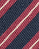 Mogador is one of our favorite tie blends… cotton in the warp and silk in the weft gives it a low-key, slightly duller shine than a traditional repp. It's special and understated enough for the second look. The stripes on this one run the English way — left down to right, heart to sword — per regimental tradition. It's hand-rolled in Italy using our forever-go-to 8cm width: not too skinny, not too fat, and designed to sit in perfect harmony with both the lapel of our jackets and the length of our shirt collars.
