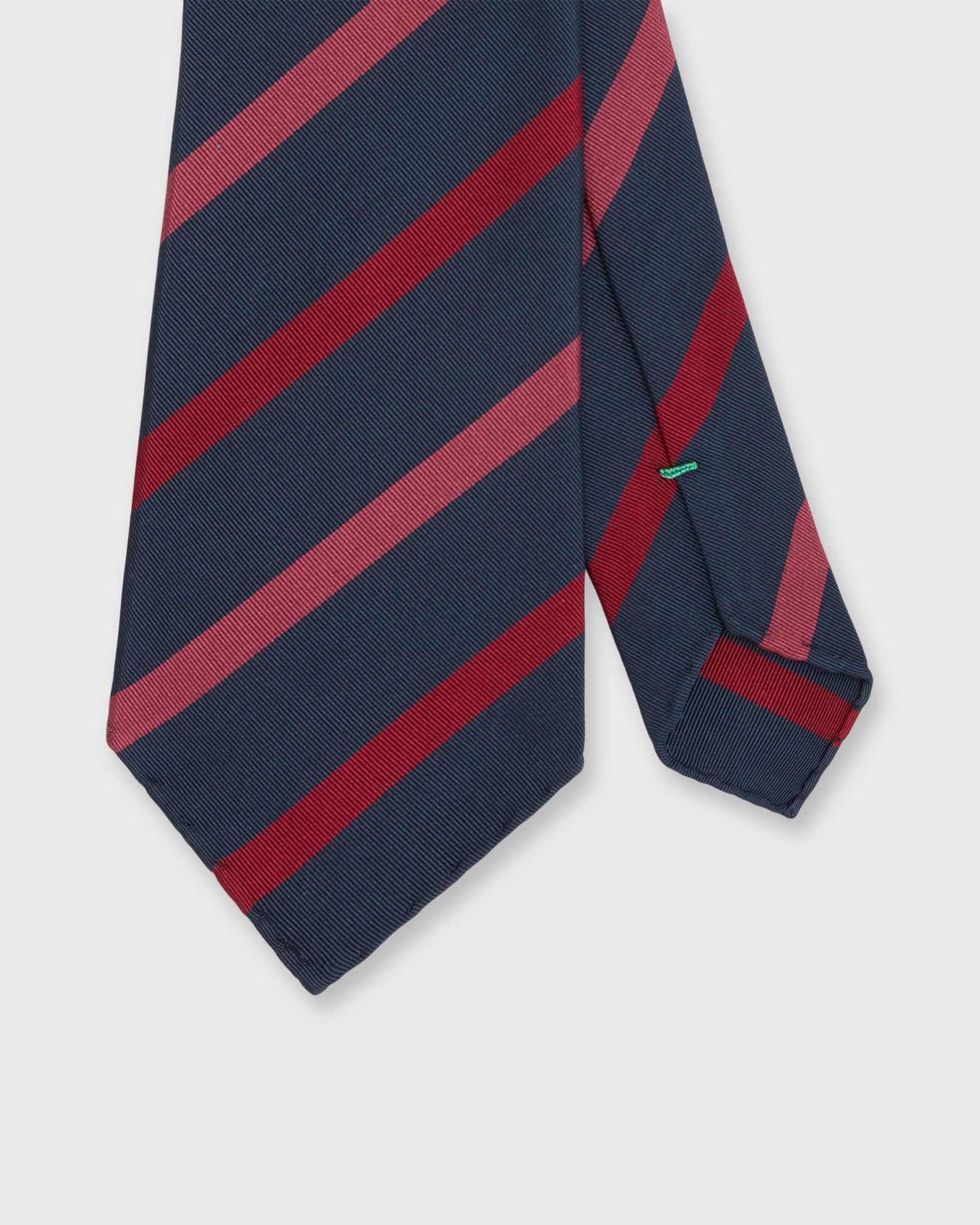 Mogador is one of our favorite tie blends… cotton in the warp and silk in the weft gives it a low-key, slightly duller shine than a traditional repp. It's special and understated enough for the second look. The stripes on this one run the English way — left down to right, heart to sword — per regimental tradition. It's hand-rolled in Italy using our forever-go-to 8cm width: not too skinny, not too fat, and designed to sit in perfect harmony with both the lapel of our jackets and the length of our shirt collars.